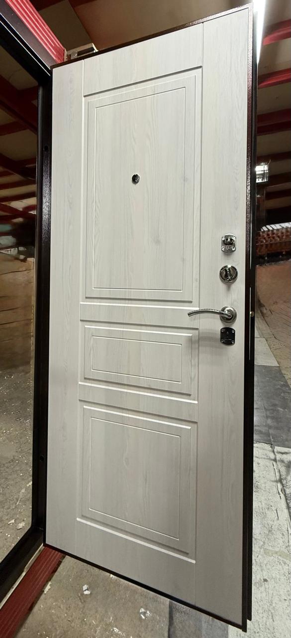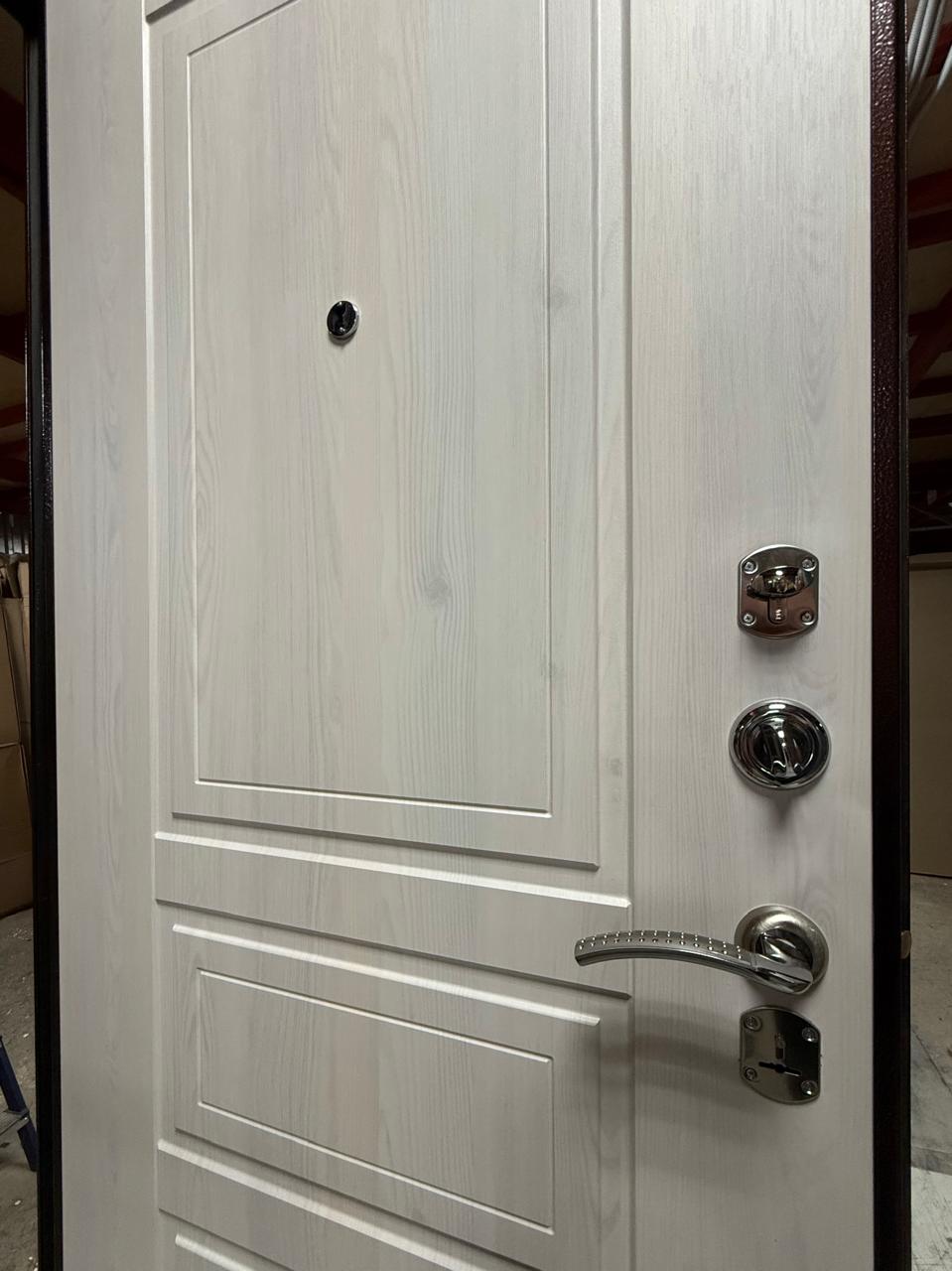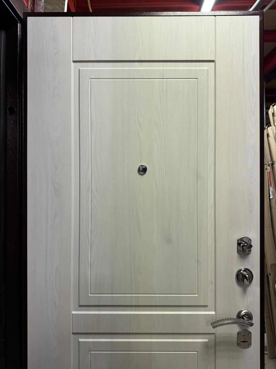 Входная сейф-дверь Гранд Антик медь Гаральд LE - лимитированная модель с декоративной панелью в цвете Сосна прованс идеально подходит для квартиры. Сталь толщиной 1,7 мм, усиленная профильная конструкция и противосъемные фиксаторы обеспечивают высокую прочность и надежность. Оснащена двумя надежными замками третьего и четвертого класса взломостойкости, а также ночной задвижкой для дополнительной безопасности.